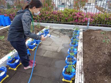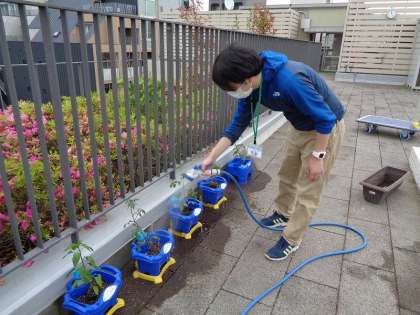 一通り,野菜を観察した後は先生たちで水やりをしました。