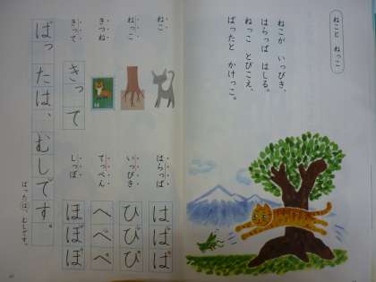こくごの きょうかしょ 46ぺえじ『ねこと ねっこ』を ひらきましょう。