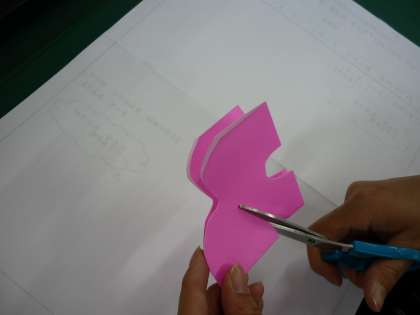 おった かみを はさみで きって みましょう。どんな かたちが できるかな…