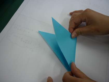 つぎの おりがみは,さんかくに 2かい おって みましょう。
