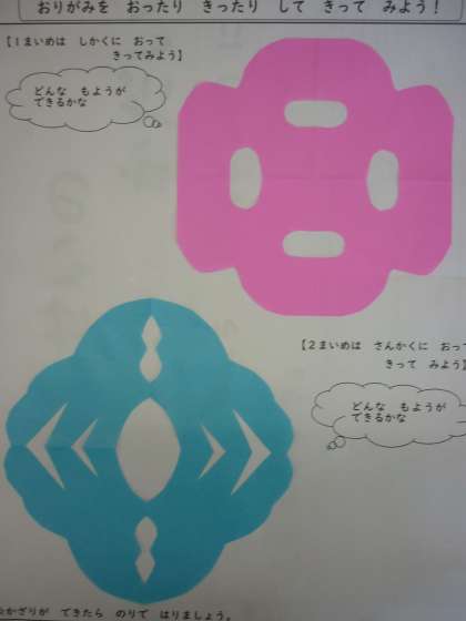 こんな かたちが できました!できたら,「のり」で はりましょう。