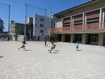 運動場では,鬼ごっこなどをして,友達と楽しく遊びました。