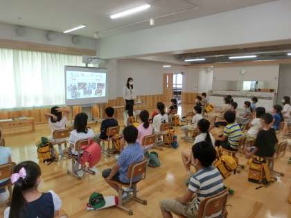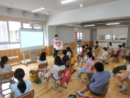 後半は,校長先生から学校目標や新しい生活様式についてなどのお話がありました。これからの学校生活にかかわる大切なお話を一生懸命に聞いていました。