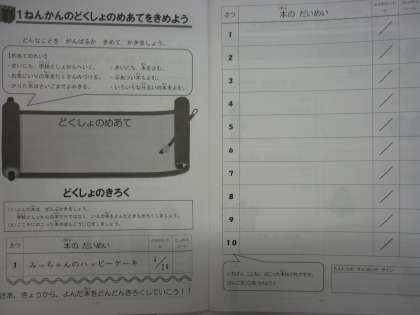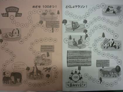 「めざせ100さつ!どくしょマラソン!」で,楽しく色をぬりながら進んでいくようになっています。