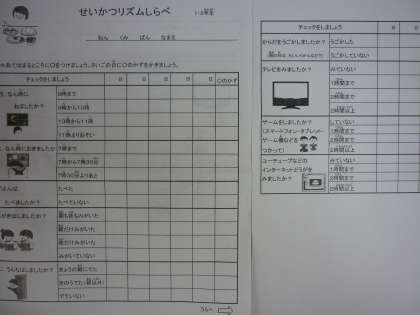 ウォーミングアップ期間に,生活のリズムを整えていけるように,毎朝生活調べを行っています。