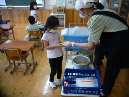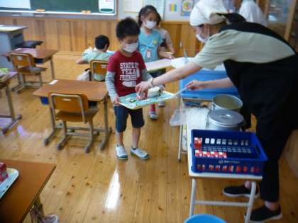 牛乳,ごはん,おかずと落とさないように「そうっ」と運ぶことができました。