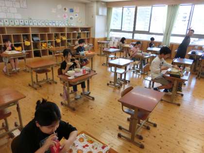 給食が始まりました(5年) 公開日 2020/06/09 更新日 2020/06/09 5年生 B班は,今日が今学期最初の給食です。 みんなが安心・安全に食べることができるように,配膳の仕方や食事の仕方をみんなで確認し合って,給食をいただきました。 本当はワイワイ話しながら食べたいけれど,今はがまん・・・。 久しぶりの給食は,とても美味しかったね!