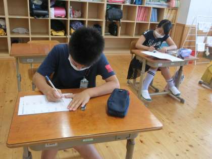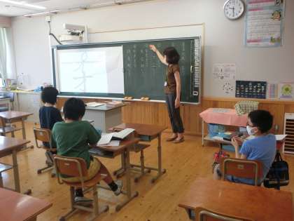 漢字の成り立ちについての学習です。先生からクイズが出題されました。象形文字についての問題です。子どもたちは,絵をじっくりと見て,首をひねりながら見方を変えたり,想像を膨らませたりして考えていました。答えが出されると,「なるほど!」と納得した様子でした。