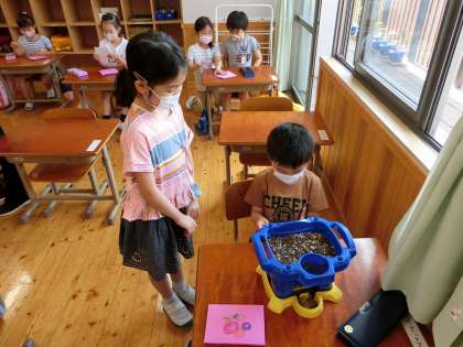 2年生は,1年生のときに育てたアサガオの種を,1年生にサプライズでプレゼントしよう,という計画を立てていました。今日までに手紙を書き,1年生に伝える言葉を一生懸命考えました。