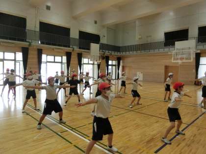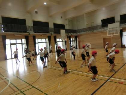 子どもたちは懸命にリズムをとって体を動かしていました。