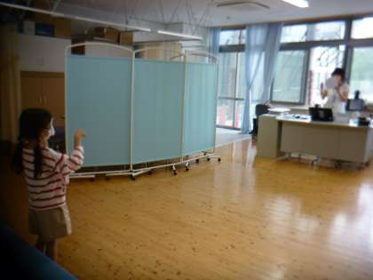保健室前の廊下には,「夏のファッション」の掲示がありました。
