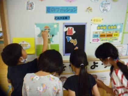 暑い日には,「風通しのよい,すずしい服装で,水分補給をしっかりすること」が大事ですね。「どれが合っているかな」と楽しく選んでいました。