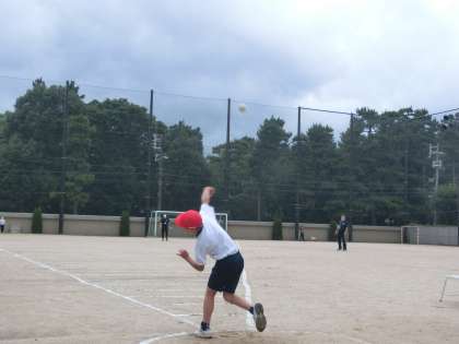 本校の運動場では,50メートル走とソフトボール投げが実施できないので,鴨沂高校の広いグランドをお借りしました。