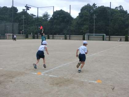 学校を出発する前には準備体操をして,やる気満々の子どもたちです。今の自分の体力を知ることを目標としているので,今の自分に挑戦です。昨年の自分をこえようと,みんな真剣に取り組んでいました。
