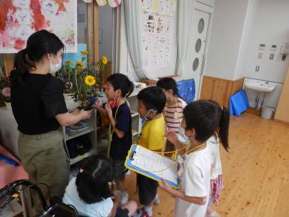 3組さんのお部屋にお友達もいるので,「どんなお勉強をしているか知りたい。」と思っている子どもも多かったです。3組には,「どんなものがあるの。」「3組さんのお友達の好きなものを教えてください。」などの質問がありました。