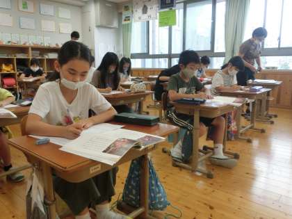 授業の様子 (4年) 公開日 2020/07/17 更新日 2020/07/17 4年生 国語科の学習で,「アップとルーズで伝える」をしています。この文章では,アップとルーズのことが対比して書かれているので,接続語に注意して読み進めました。言葉にこだわりながら,それぞれの特徴をまとめることができました。