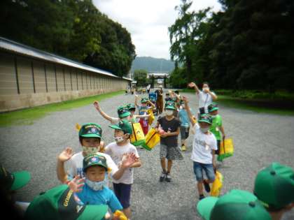ごしょへ いったよ 1(1ねんせい) 公開日 2020/07/29 更新日 2020/07/29 1年生 今日は,生活科の「なつを たのしもう」で御所へ行きました。花や草,生き物など自然を探してきました。 昨日から,御所へ行くことを楽しみにしていた1年生。中に入ると大きな木があったり,蝉の鳴き声を聞いて「夏だ〜」と言っている子がたくさんいました。今日は,いい風が吹いていて,「扇風機みたい」と夏を感じながら,歩いていました。