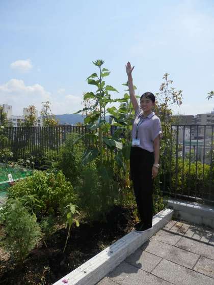 なつやすみの あいだに おくじょうの おはなは ぐんぐん せいちょうしました。ほうせんかは はっぱの あいだから 「こんにちは」と きれいな ぴんくの おはな がかおを だして います。かくれんぼを しているのかなと せんせいは おはなを さがして みました。そうすると かぞえきれない ほどの おはなが たくさん さいていました。ひまわりは たかやしきせんせいの せを ぬかし そらに むかって ぐうんと のびていました。とっても たかくて びっくり。また みんなで みに いきましょうね!!