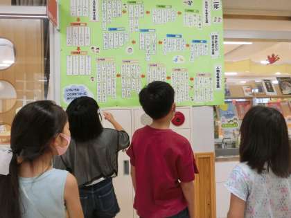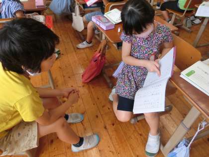 国語「かんじのひろば」では,絵の中の漢字を用いながら気持ちを表す言葉や物の様子を表す言葉などを使って,詳しく分かりやすい文章づくりに挑戦しました。子どもたちは,教室前に掲示している「ことばのたからばこ」を真剣に見ながら,使いたい言葉を選んでいました。文章を書いた後は,友達と読み合い,感想を伝え合いました。