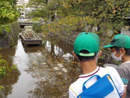 総合「みらい」川に行きました3【4年】 公開日 2020/09/09 更新日 2020/09/09 4年生 最後に高瀬川を訪れました。高瀬川は川の中に入ることは出来ませんが,ゆったりと景色をながめながら,川の音に耳を澄ませていました。「絵にかきたいな」「ゆったりとした気持ちで落ち着くな」などとつぶやいていました。 また,鴨川やみそそぎ川にはなかった石碑やお店などが周りにあることにも気付いていました。他にもどのような発見があったのか,今後交流するのが楽しみです。