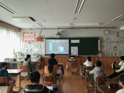 ZOOMでの朝会にも随分と慣れてきたようで,児童会の目標や各クラスが作った人権標語を集中して聞いていました。