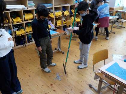 ほってすって見つけて2(4年) 公開日 2020/12/10 更新日 2020/12/10 4年生 授業を終えた後の片づけは,自分たちで声をかけ合って進めていました。彫って出た削りカスの掃除も,版画板を集めるのも,せっせと分担して進めている姿から成長を感じます。見ていて嬉しくなる瞬間でした。
