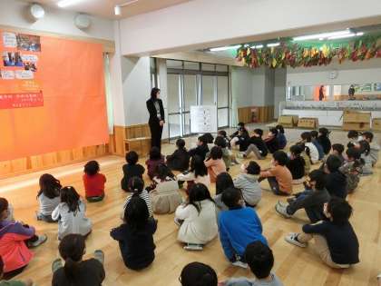 今日は2学期最終日ということで,学年で集まり,校長先生と一緒に2学期を振り返りました。