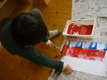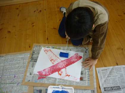 ぺったん コロコロ(1年) 公開日 2021/01/14 更新日 2021/01/14 1年生 図画工作の時間に,ローラーにいろいろな色の絵の具をつけて写しました。「どんな模様ができるかな」「つながって,おもしろいな」と楽しみました。