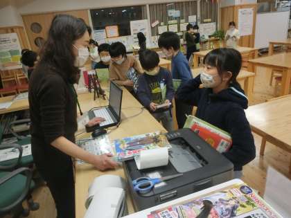 読書センターを覗くと,本を借りにたくさんの子どもたちが来ていました。学校司書の川原先生にお薦めの本を聞いたり,冬休みに読んで楽しかった本を紹介したりしていました。読書ノートには,今までに読んだ本の題名がたくさん書かれていましたよ。