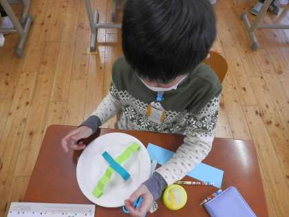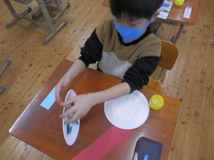 図画工作「かみざら コロコロ」 (1年)