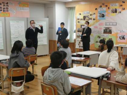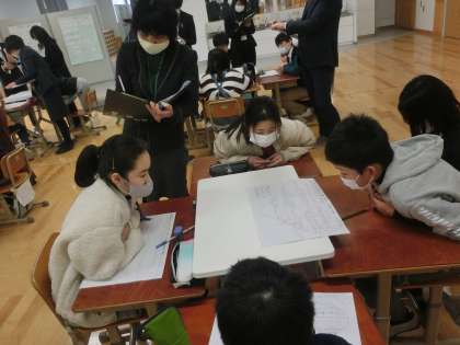 伝統工芸に携わる人から話を聞いたりインタビューしたりして「匠の魂」について探っています。この日は,各自が考える「匠の魂」について交流しました。「長い間受け継がれてきた高い技術だけでなく,愛情を込めて作ること」「心が込もっているから手作りでする意味がある。機械で作るのとは意味が違う。心があるから,機械で作るより喜ばれる」など活発に意見交流されました。最後には伝統産業ミユージアムの方から,伝統工芸のよさや素晴らしさを話してもらうと共に,直面している課題についてもお話ししていただき,自分事として新たな課題意識をもちました。