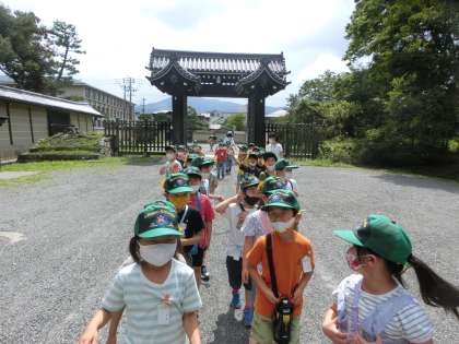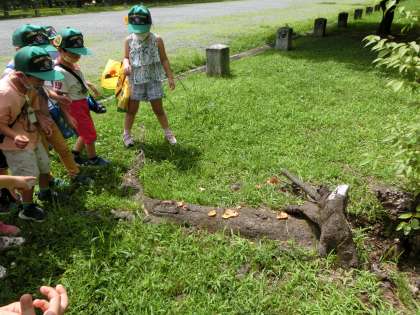 ごしょへ いったよ1(1年) 公開日 2021/07/14 更新日 2021/07/14 1年生 今日は,よいお天気の中,楽しみにしていた「ごしょ」へ出発しました。「ごしょ」へ着くと,「せみの声が聞こえるよ」「風が扇風機みたいで気持ちいいね」「森のにおいがするね」と自然といっぱい感じながら,進んでいきました。 一番最初に見つけたものは,「きのこ」でした。木からたくさんの「きのこ」が生えていて,びっくり!木にあいていた穴が「トンネルみたい」とすてきな探検の出発になりました。