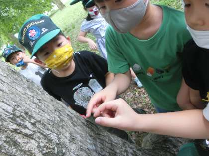 ごしょへ いったよ3(1年) 公開日 2021/07/14 更新日 2021/07/14 1年生 「ばった」や「ちょう」「みみず」など,生き物もたくさん見つけました。「木にせみのぬけがらがついているよ」,今の季節にぴったりのものも見つけて,喜びでいっぱいでした。うれしいけれど,でも,「生き物は『ごしょ』へ返してあげよう」と優しい姿も見られました。