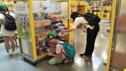 暑さには注意しながら活動しています。建物に入ってお土産を買う姿も。上手に涼みながら時間を使ってます。