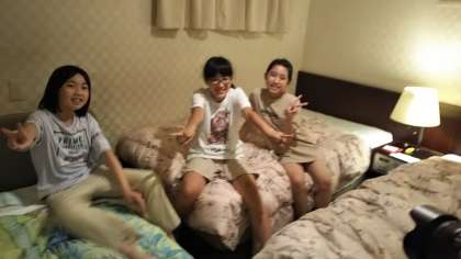 それぞれ部屋に入って、荷物整理をした後に入浴タイム。それまでの間はベッドに座って少し休憩です。