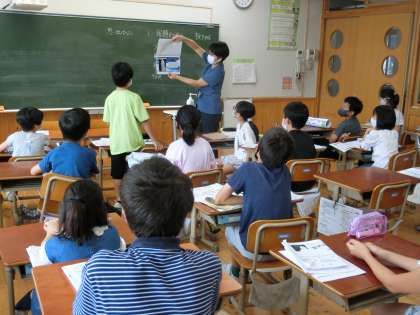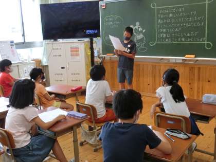 それぞれのクラスを覗くと,夏休みの課題をみんなの前で発表したり,先生に質問されたことに答えたりする姿が見られました。少し緊張しながらも,自分たちの言葉でしっかりと話す姿が見られました。