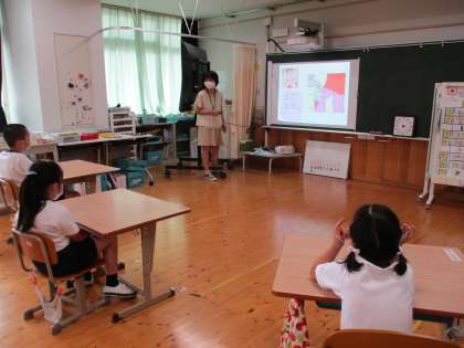 身体計測の時に,保健室の小原先生から正しい手の洗い方の指導を受けました。手首や指の間に汚れが残りやすいことがわかりました。今日から,今まで以上にしっかりと手を洗いたいと思います。