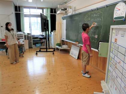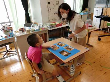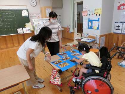 今までの活動を写真を使って振り返りながら,これからの学習課題(作りたいものややりたいこと)を考えました。段ボール箱を使ってかくれんぼ,トンネル,でんしゃ,ぐらぐら箱など楽しいことがいっぱいです。どれにしようか悩んで悩んでやりたいことを決めました。次回の活動が楽しみになってきました。