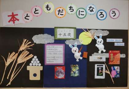読書の秋 公開日 2021/09/08 更新日 2021/09/08 学校の様子 「十五夜」に合わせて読書センターでは,「月をテーマにした本」が紹介されています。「月をみよう」「月へいったうさぎ」「ぬすまれた月」など,たくさんの物語や科学読み物があります。自粛期間が長引いています。本を手に取ってゆっくりと読んでみてはどうでしょう。