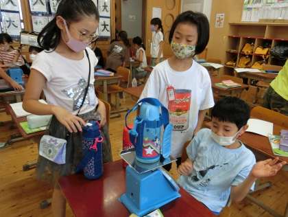 はかりの使い方を学んで,様々なものの重さをはかりました。はかりは平らな所に置いて,メモリが0を指しているかどうか確かめてからはからなければいけません。はかりの正面にいって正しく読めるか,順番に練習しました。