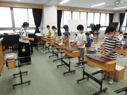 音楽室からきれいな木琴の音が聴こえてきました。覗いてみると4年生が練習しています。打つ位置を確認するだけでなく,スタッカートが付いている曲なので,はずむようにバチを動かすことを教わっていました。友達同士で教え合う姿も見られました。