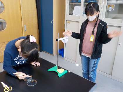 理科の学習でふりこの動きの学習を始めました。今日はまずはじめに,ふりこが10往復する間に豆を何個つまめるか競争をしました。「往復するのに時間がかかった方がたくさんつまめる!」と気づいた子たちは,たくさんつまむことができていた様子です。