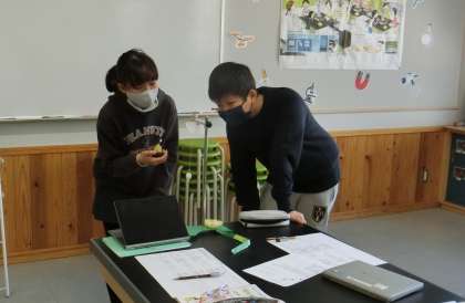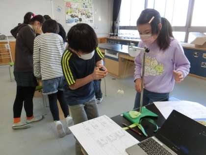 ふりこの動き (5年) 公開日 2021/12/09 更新日 2021/12/09 5年生 今日の学習のめあては,「振り子の振れ幅やおもりの重さを変えても,往復する時間は変わらないのだろうか」です。生活や遊びの中での経験と結び付けて予想を立ててから実験開始。ペアで役割を決め,記録を取りながら,意見を交わして考察していました。