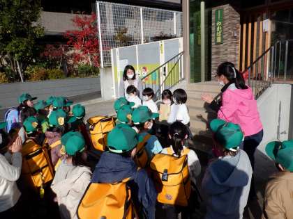 17日(金)に,近くの「わかば園」の年長組さんが,生活科で学習している「秋の宝物屋さん」に遊びに来てくれます。今日は,わくわくしながら「招待状」をお届けに行きました。新しい1年生や先生が,待っていてくれ,直接,受け取ってもらうことができました。新しい1年生が「ありがとうございます。」と,とてもしっかりご挨拶してくれました。1年生はみんな「とってもかしこいね!」とびっくりしていました。一緒に遊べるのを楽しみにしています。