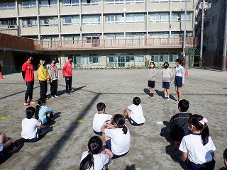 運動場では,「足が速くなるダンス」を生かした陸上教室が行われました。
