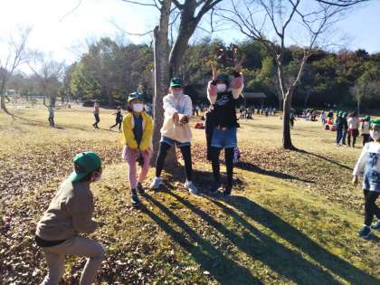 昼食を食べた後は,広い広場でグループで遊びました。落ち葉で遊んだり,広場にある運動器具で遊んだり。