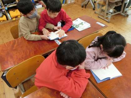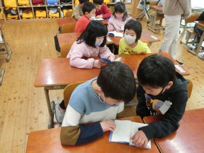 国語の時間に,工藤直子さんの詩集「のはらうた」を読んでいます。教科書には,「かたつむりのゆめ」「はちみつのゆめ」という詩が載っています。どちらもすてきな夢の詩です。「のはらうた」には,「にじひめこ」さん,「とかげりょういち」さん,「ありんこたくじ」さん,「やまばとひとみ」さんなど,他にもたくさんの野原の仲間が登場します。教科書の「かたつむりでんきち」さんや「こぐまきょうこ」さんの違う詩も載っています。みんな,楽しみながら想像したり,声に出して読んだりしています。