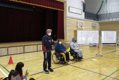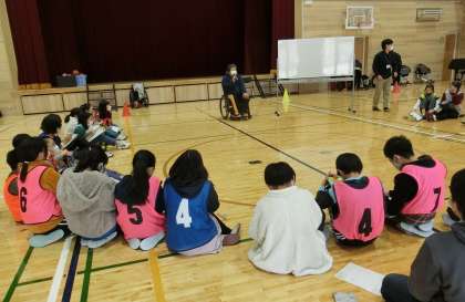 車いすバスケットボール体験1(6年) 公開日 2022/01/14 更新日 2022/01/14 6年生 総合こころの学習では,「共生社会」について探究しています。 車いすバスケットボールの選手の方々に来ていただき,実際に体験をしたりお話を伺ったりしました。