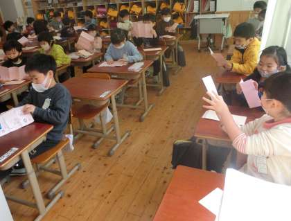 お手紙をもらった子ども達は,わくわくどきどき。待ちきれない様子で,みんながもらい終わるのを待っていました。大切に開けてみると,お家の方から心温まるメッセージが…「なんだか,はずかしいな」「すごくうれしいな」みんな,にこにこ笑顔で,うれしそうにお手紙をじっくり読んでいました。
