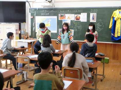 学習を終えた後には,「おとなりの国だから,韓国・朝鮮のことをもっと知りたい」と韓国・朝鮮の文化を身近に感じて親しみをもつことができました。